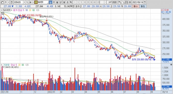 특징주 Naver 미 나스닥 급락 충격에 장중 52주 최저가